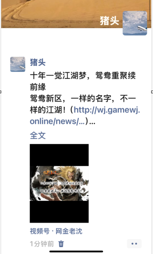 2、转发2025年10月21日【网金老沈(微信号jylaoshen)】视频号“網金江湖録鸳鸯新区”视频到自己微信朋友圈,即可轻松获得“转发好礼”!