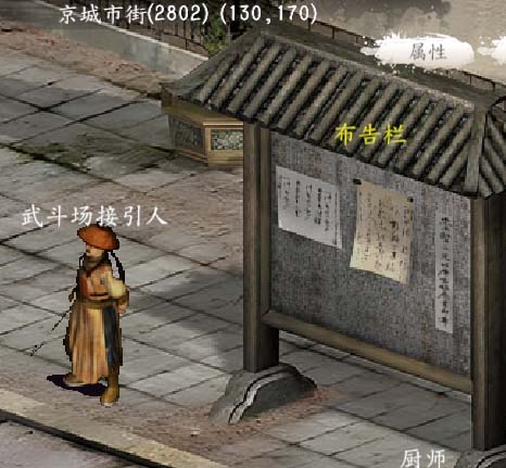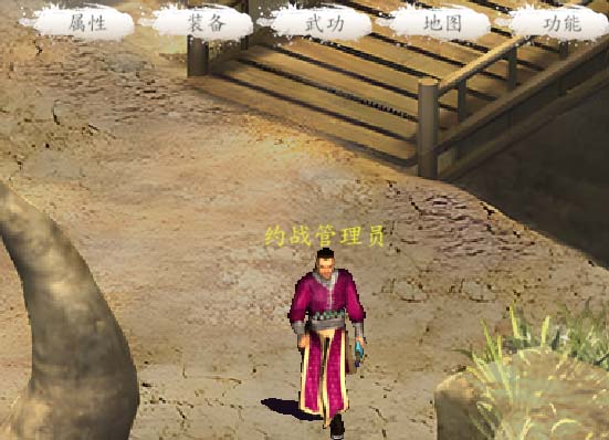 2、玩家(应战方)可通过京城(布告栏处)武斗场接引人,传送至武斗场找NPC约战管理员进行应战。