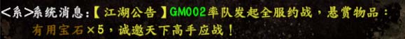 5、约战成功发起,系统全屏公告:提示***玩家发起约战,悬赏物品名称及数量。